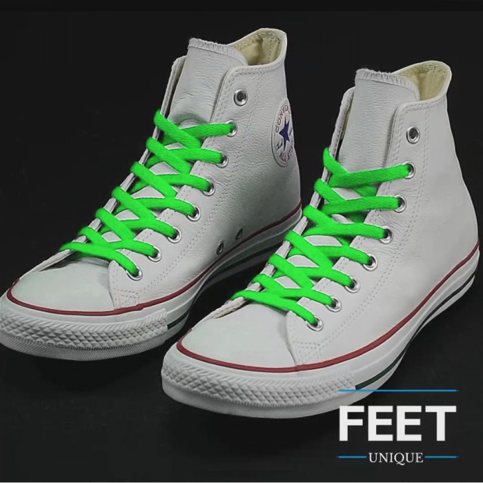 Køb vores flade neon-grønne snørebånd, hvis du vil forny din garderobe med stærke farver.